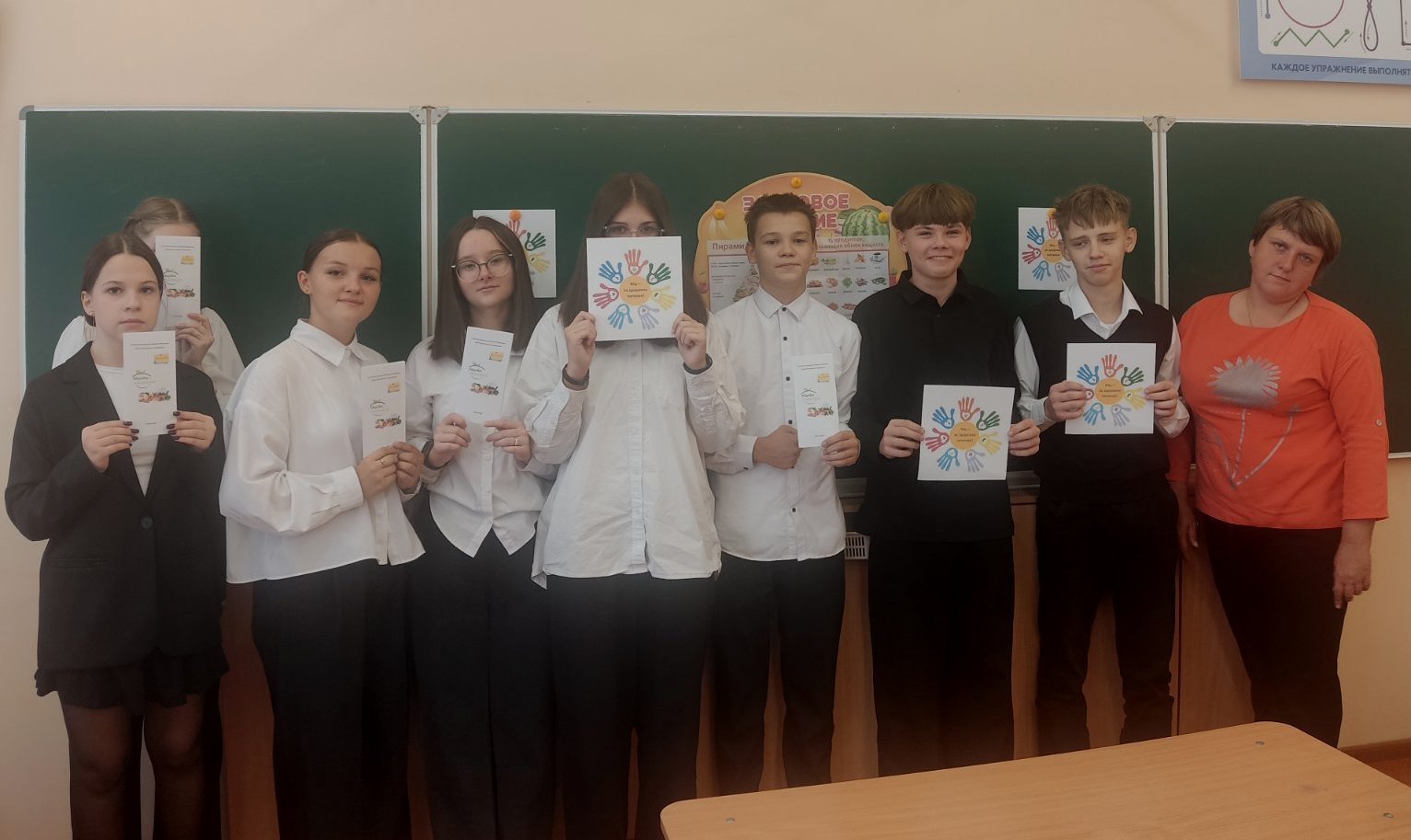 Для учащихся 5 «А» класса сотрудники библиотеки провели урок здоровья «Мы – за здоровое питание!». В ходе мероприятия ребята узнали, что такое правильное питание и его принципы. Также поговорили о питательных веществах, необходимых для организма и о том, в каких продуктах они содержатся. Библиотекари вместе с учащимися вспомнили пословицы и поговорки о питании. В завершение мероприятия ребята пришли к выводу — чтобы быть здоровым нужно следить за своим рационом.