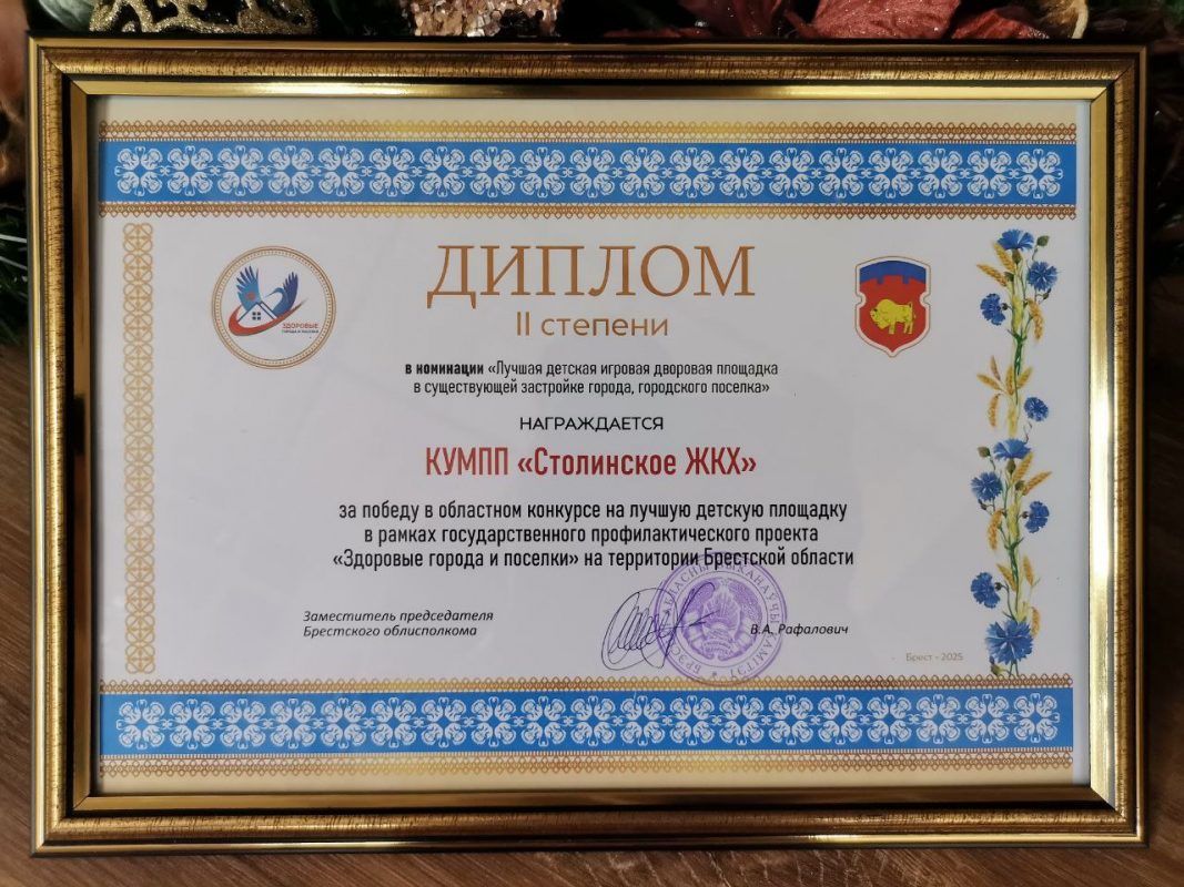 Поздравляем Александра Аврамовича и весь коллектив с высокой оценкой труда! Эта награда — признание наших совместных усилий по созданию в Столине безопасной, современной и эстетичной среды для отдыха и игр наших детей.