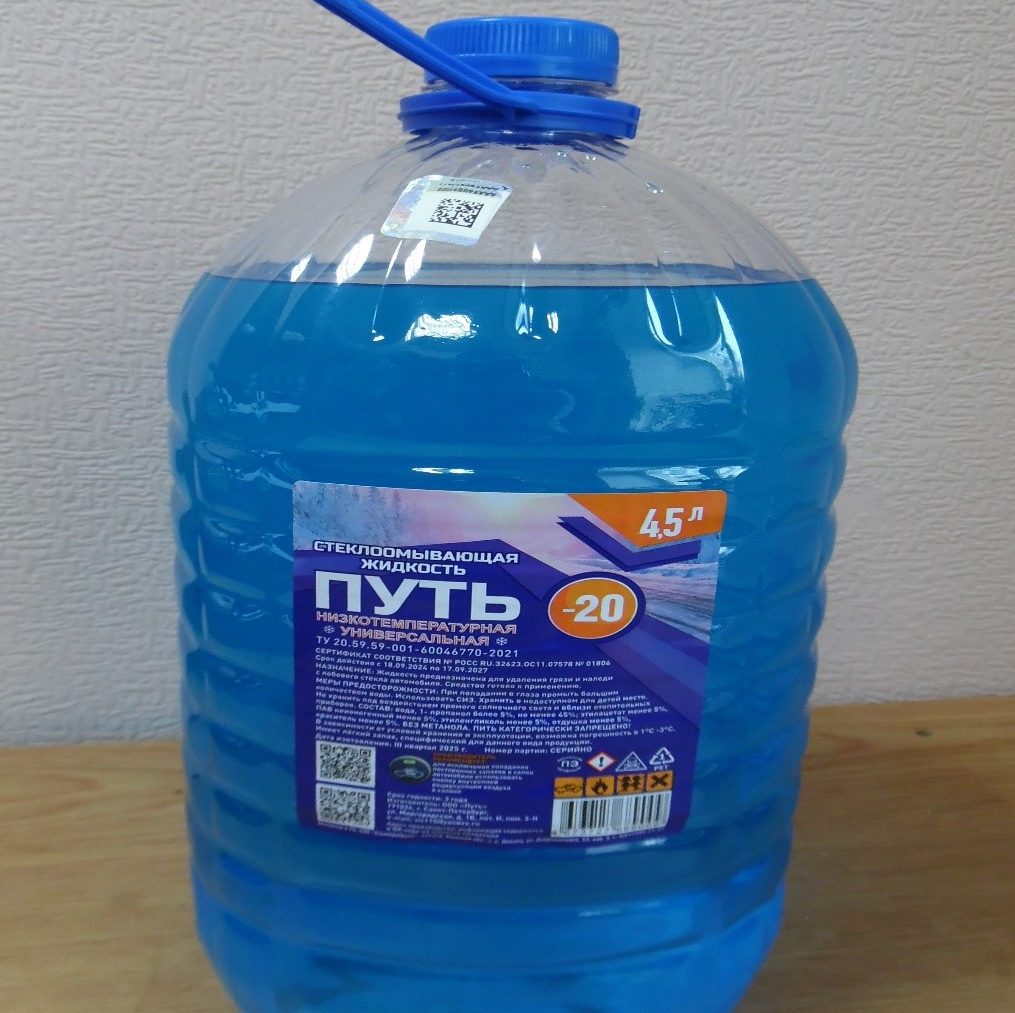 —  стеклоомывающая жидкость низкотемпературная универсальная «Путь» — 20 в ПЭТ-емкости объемом 4,5 л, состав: вода, 1-пропанол более 5%, но менее 45%; этилацетат менее 5%, ПАВ неионогенный менее 5%, этиленгликоль менее 5%, отдушка менее 5%, краситель менее 5%, без метанола, дата изготовления III квартал 2025, номер партии – серийно, срок годности 3 года, штрих-код 4 673727 689009, изготовленная согласно ТУ 20.59.59-001-60046770-2021. Изготовитель: ООО «Путь», 191024, Россия, г. Санкт-Петербург, ул. Миргородская, д. 1Б, лит. И, пом. 3-Н, e-mail: vic115@yandex.ru. Адрес производства: 187340, Россия, Ленинградская область, Кировский район, г. Кировск, ул. Набережная, д. 1/10, не соответствует требованиям пункта 5.8 Единых санитарно-эпидемиологических и гигиенических требований к товарам, подлежащим санитарно-эпидемиологическому надзору (контролю), утвержденных Решением Комиссии таможенного союза от 28.05.2010 № 299, главы II, раздела 5 «Требования к товарам бытовой химии и лакокрасочным материалам», подраздел 1 «Товары бытовой химии», Гигиенического норматива «Содержание метанола в низкозамерзающих стеклоомывающих и антиобледенительных жидкостях», утвержденного постановлением Совета Министров Республики Беларусь от 25.01.2021 №37 (в редакции постановления Совета Министров Республики Беларусь №829 от 29.11.2022) по показателю безопасности «содержание метанола»: фактическое содержание – 0,22±0,03 об.%, при нормированном значении — не > 0,05 об.%.