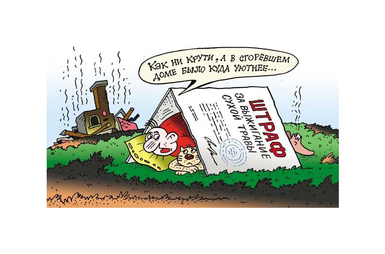- Согласно статье 16.40 КоАП Республики Беларусь, за незаконное выжигание сухой растительности, трав на корню, а также стерни и пожнивных остатков на полях либо за непринятие мер по ликвидации палов виновным грозит штраф в размере от 10 до 30 базовых величин.