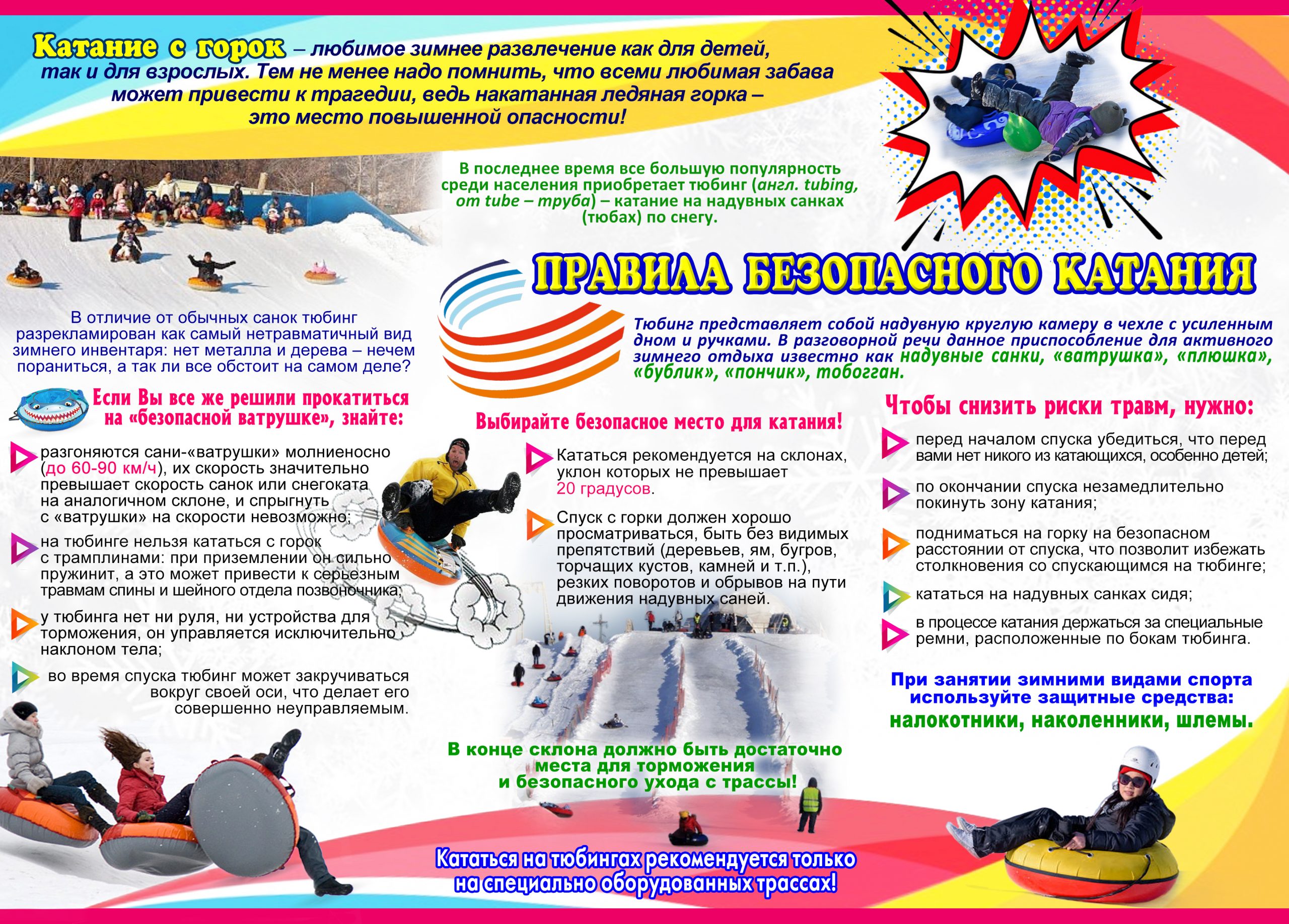 Поэтому напоминаем о правилах, которые важно соблюдать во время катания на тюбинге: