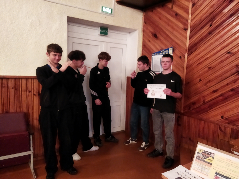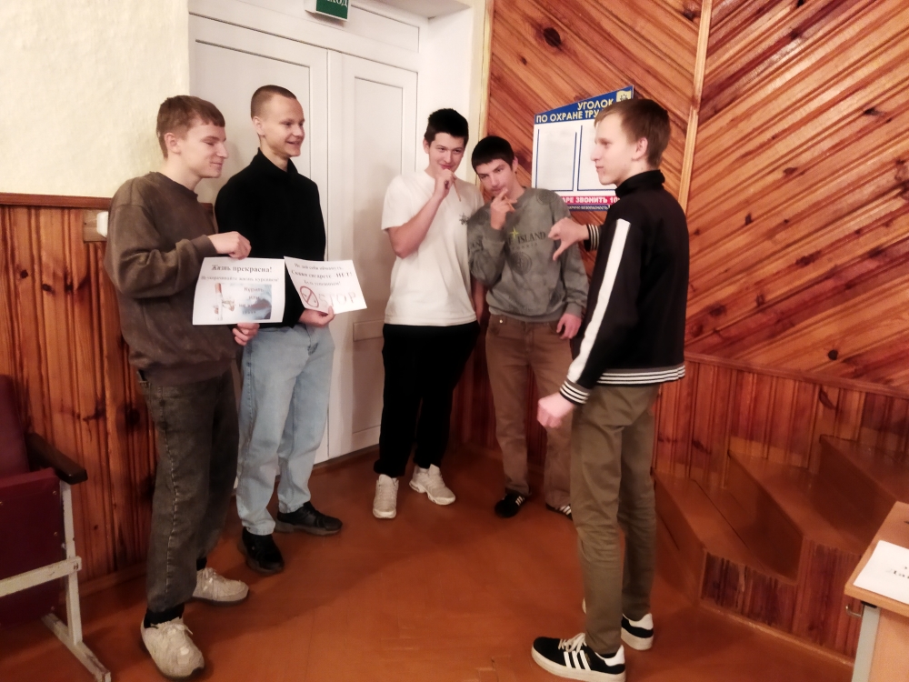 Победители выстроились в следующем порядке: 1 место — Команда «Гвардейская» (гр. № 41); 2 место разделили две команды — «Дикие электрики» (гр. № 42) и «Тили-Бом» (гр. № 43); на 3 месте команда — «Всё будет хорошо» (группа № 40). Отрыв в баллах был очень мал (1-2 балла), поэтому сладкий приз за участие получили все. Организована выставка и раздача информационно-образовательных материалов (буклеты, листовки, памятки): «Цена курению – Ваша жизнь!», «Электронные сигареты: так ли они безопасны?», «Сколько стоит курение?», «Снюс – никотиновая ловушка», «Где нельзя курить», «Курение и потомство», «Как бросить курить?», «Я люблю тебя, жизнь», «Живи активно! Живи здорово!».