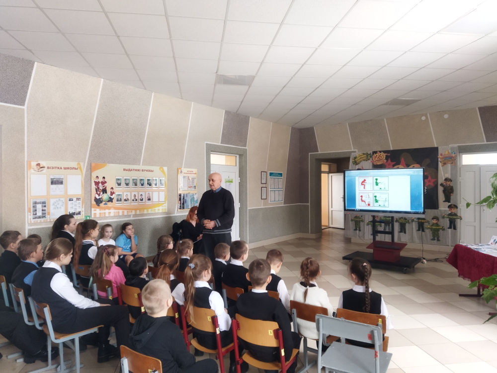Корчевский Г.И. – в рамках проекта «Правильная осанка – залог здоровья!» говорил о влиянии искривления осанки на организм человека, о причинах возникновения и профилактике возникновения заболеваний осанки, выполнении правил использования рюкзака, парты и конторки, поведения за партой, выборе обуви, подушки, ведении подвижного образа жизни и занятия физкультурой;