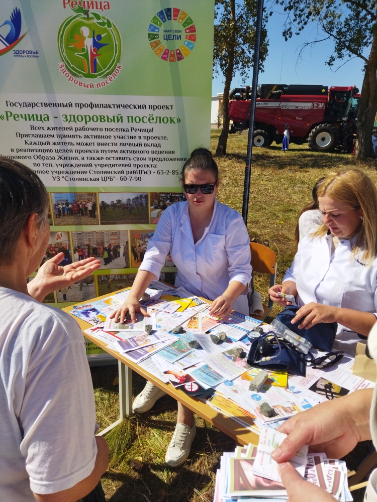 30 августа 2025 в рамках районных мероприятий фестиваля-ярмарки «Дожинки – 2025» и реализации профилактических мероприятий проекта «Здоровые города и поселки» — «Речица – здоровый поселок», Речицкой амбулаторией общей практики УЗ «Столинская ЦРБ» с участием государственного учреждения «Столинский районный ЦГиЭ» было организовано мероприятие «Аллея здоровья»